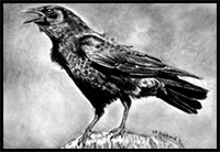 Learn how to draw a raven with charcoal in this drawing lesson. Use vine, compressed charcoal, charcoal pencils and white charcoal to complete the drawing on gray charcoal paper.